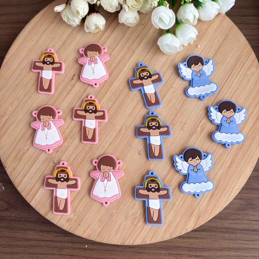 Aplique Religioso Emborrachado Entremeio Anjo + Cruz Mini Terço Infantil 10 unidades sendo 5 pares