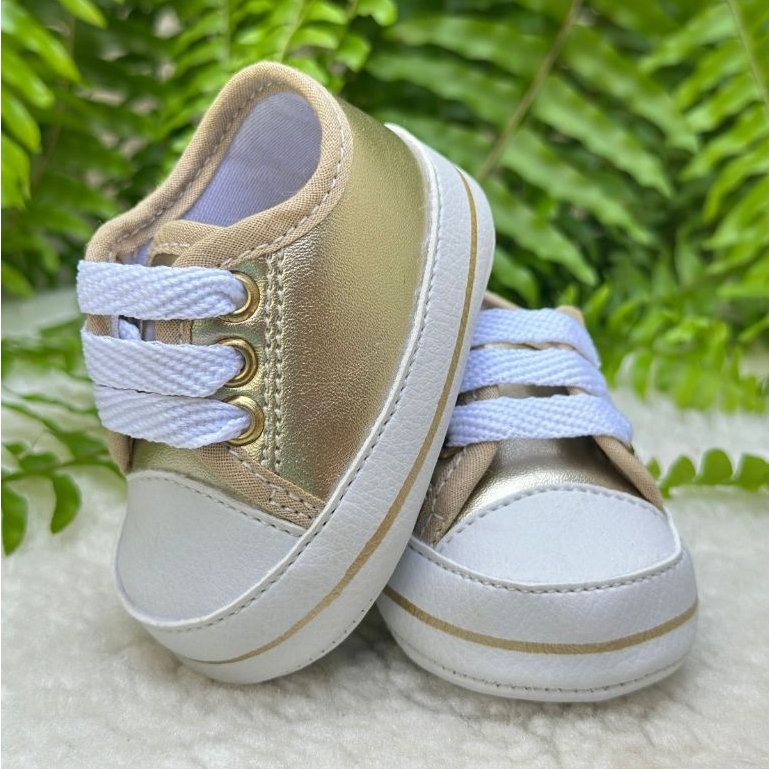 Tenis de Bebe Menina Dourado para Recém Nascido - Tenis Sapatinho de Bebezinho Dourado