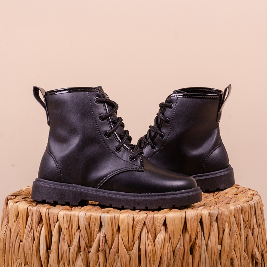 Bota Infantil Coturno Preta Cano Curto Com Cadarço Confortável Dia a Dia