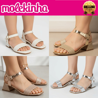 Sandália Molekinha Infantil Feminino Calce Saltinho Salto Bloco Brilho Glamour Casual Original