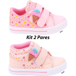 Kit 2 pares Tênis Infantil Feminino Sorvetinho Meninas - ROSA/NUDE