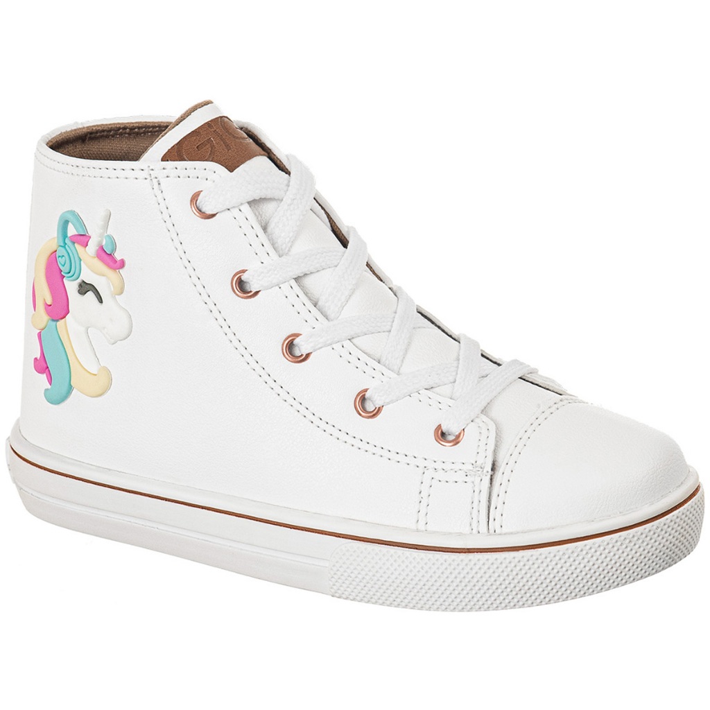 Tenis Infantil GiGiL Teen Feminino Enfeite Unicórnio Colorido Cano Alto Escolar Macio Leve Confortável Cadarço Star Moda
