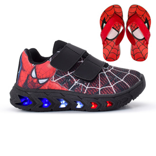 Kit Tênis Masculino Infantil Homem Aranha De Led Meninos + Chinelo Macio Confortável Brilha Luzinha