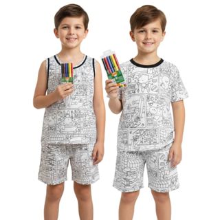 Pijama Infantil Masculino Para Colorir + 6 Canetinhas Laváveis / Desenho Criativo / Diversão e Arte