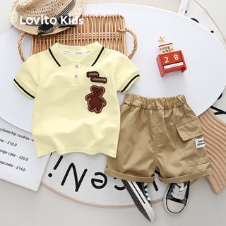 Lovito Kids Conjuntos de Shorts Fofos com Bolso Primavera/verão - Conjuntos de Shorts Cáqui para Menino LNL123029
