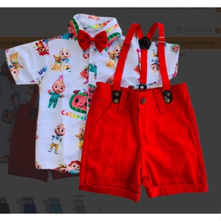 Conjunto COCOMELOM infantil menino, camisa, gravata, bermuda e suspensório