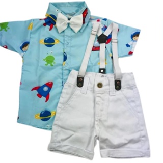 ROUPA ASTRONAUTA TEMÁTICO menino conjunto festa tema Camisa Gravata Bermuda e Suspensório