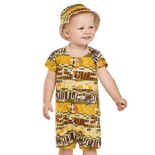 Macaquinho Bebê Menino Safári Com Chapéu Elian Bege