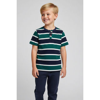 Camiseta Infantil Menino Listrada Peitilho Elian Azul
