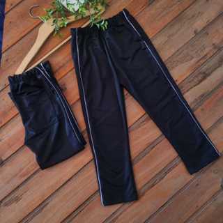 Calça PRETA helanca escolar unissex com friso branco nas laterais. Infantil e juvenil.
