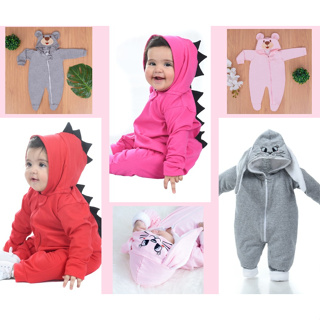 Macacão Bebê de Bichinhos Menino E Menina Com Capuz Bordado Roupas de Bebê