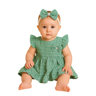 Body Vestido Bebe Menina Verão 100% algodão tiara Tamanho 0 a 3 Meses
