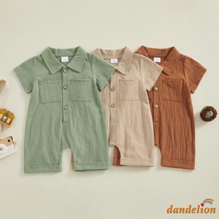 Macacão Infantil De Linho De Algodão Para Bebês Meninos , Cor Sólida , Lapela , Manga Curta , Botão Frontal , Roupas
