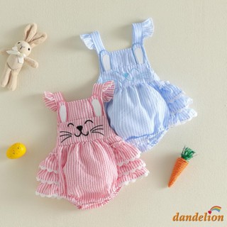 Bebê Menina Páscoa Xadrez Macacão Coelho Bordado Sem Mangas Bonito Bodysuit