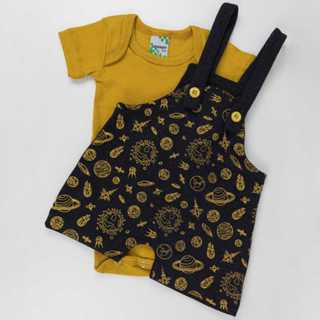 Jardineira Bebê Kit 3 Peças Temático Mesversário 100% Algodão