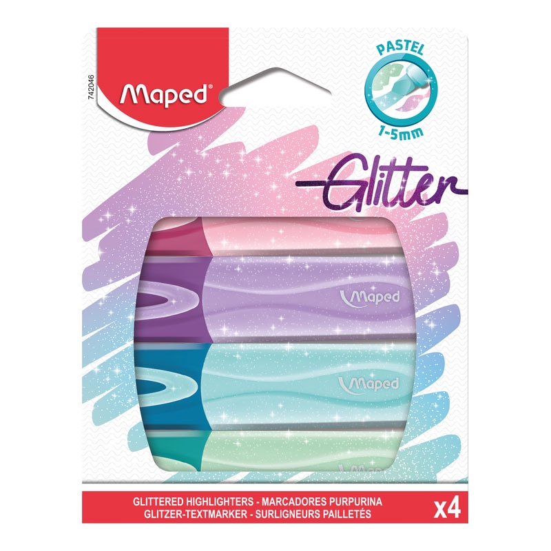 Pincel marca texto Classic Glitter estojo 4 cores pastel 742046 Maped