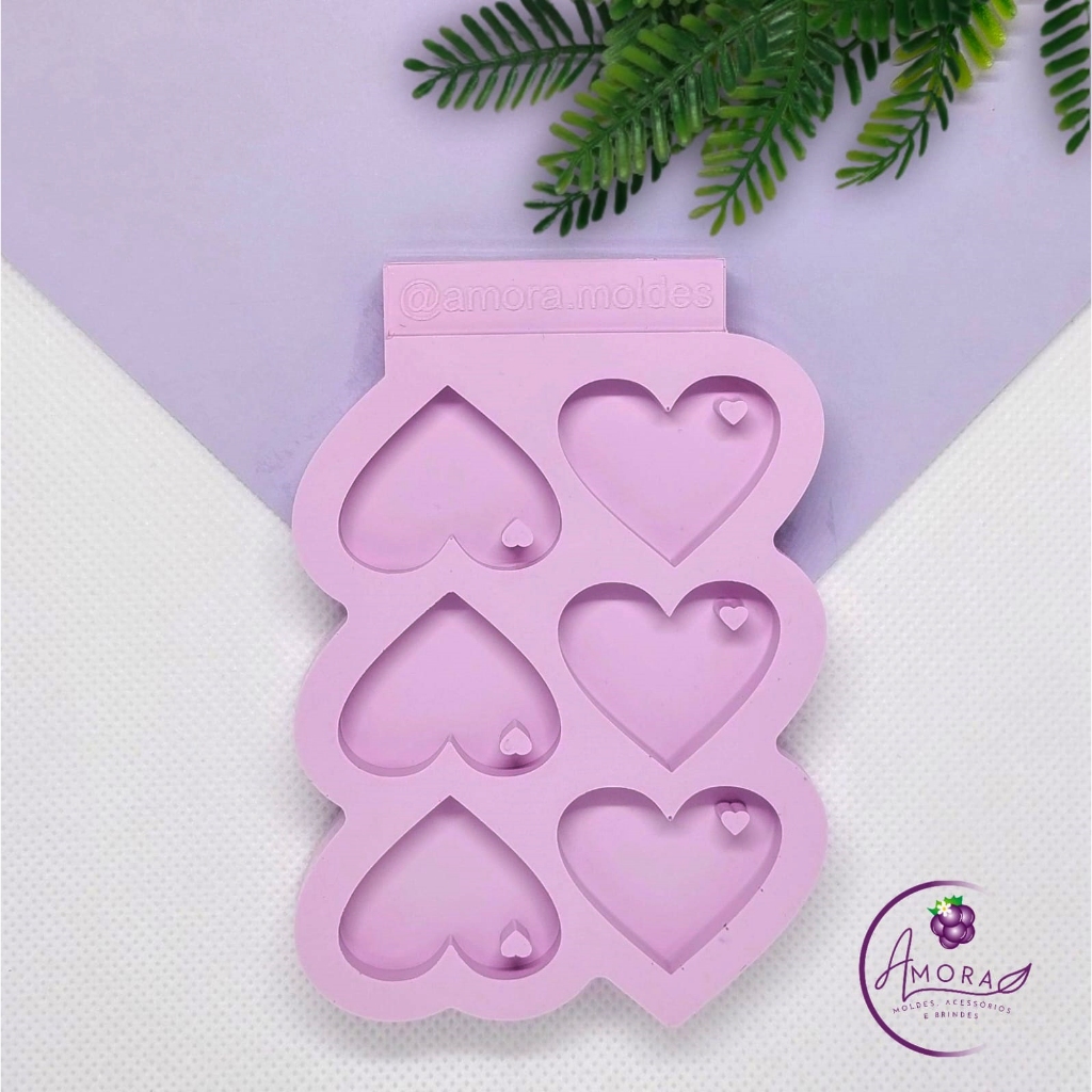 Molde de Silicone para Resina Coração com furo - 6 cavidades (3 cm)