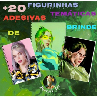 Caderno Billie Eilish A4 + 20 figurinhas adesivas temáticas de brinde