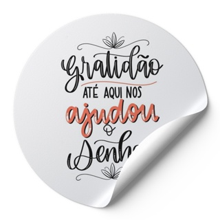 240 Unidades Adesivos Redondos Frase Gratidão Até Aqui Nos Ajudou O Senhor Fundo Liso Branco