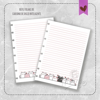 Refil de Folhas Caderno de Disco Inteligente Gatinhos Cute MOD. 01 Tamanho A5 Médio Grande