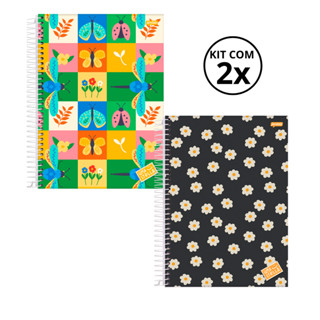 Kit 02 Cadernos Universitário 15 Matérias 240 Folhas Stella - Jandaia CAPA:Jardim/Flor