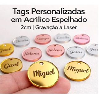 100 Tag Personalizada Em Acrílico Com Nome Logo 2cm Etiqueta Aplique