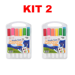 Kit 2 - Conjunto 12 Canetas Acrílicas Coloridas cores à prova d'água – Marcadores de Pintura Tinta Viva e Secagem Rápida