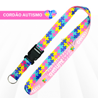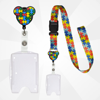 Kit Cordão Autista + Porta Crachá Retrátil Autista Laço Coração + Porta Cartão Transparente