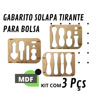 Kit com 3 Gabaritos em MDF Solapas Tirante de Bolsa Fecho Carteira Chaveiro com Cantos Arredondados