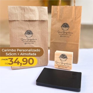 Kit Carimbo Personalizado 5x5cm + Almofada nº 3 com Tinta para sacolas, tags, caixas, papel de seda