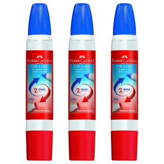 Kit 03 Cola em Gel Transparente 2 Bicos 34g Precisão e Versatilidade - Faber-Castell