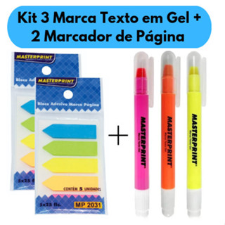 Kit 3 Marca Texto em Gel + 2 Marcador de Página Bloco Adesivo Seta Masterprint