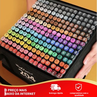 Conjunto 24/36/48/80/120/168 Canetinhas P/ Colorir Desenho Marca Texto Bolsa Ponta Dupla Criança