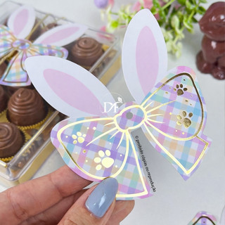 Tag LAÇO PÁSCOA hotstamping para embalagens e presentes | 10 ou 25 unid