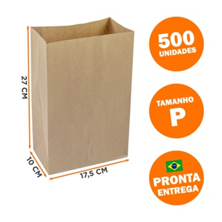 500 Sacos Papel Kraft Delivery - 27 x 18 x 9,5 cm - Tamanho P - Embalagem Comida Entrega