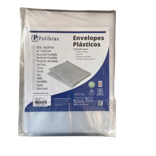 Envelope Plástico Ofício 4 Furos Fino Pacote 100 Un Polibras 0x240x330mm Para Documentos