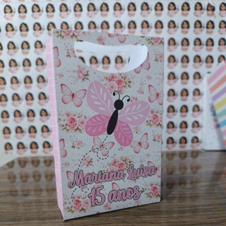 Lembrancinha Sacolinha PEGUE E MONTE Jardim das Borboletas personalizada com nome e idade