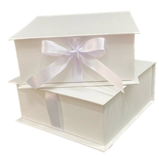 Kit 2 Caixa Cartonadas modelo livro 15x15x6cm Fecho Fita Cetim Branca
