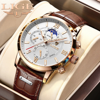 Relogio Masculino LIGE de Quartzo Estilo Militar Esportivo com Pulseira de Couro À Prova D’Água + Caixa