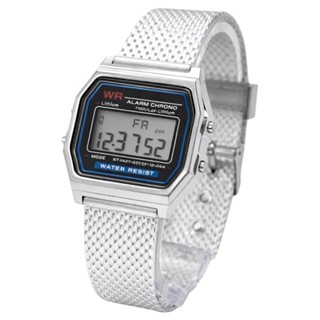 Relógio Unissex Vintage WR-Prata Com Fundo Branco , Números Pretos , Tela LED , Estilo Retrô (Não À Prova D'água)