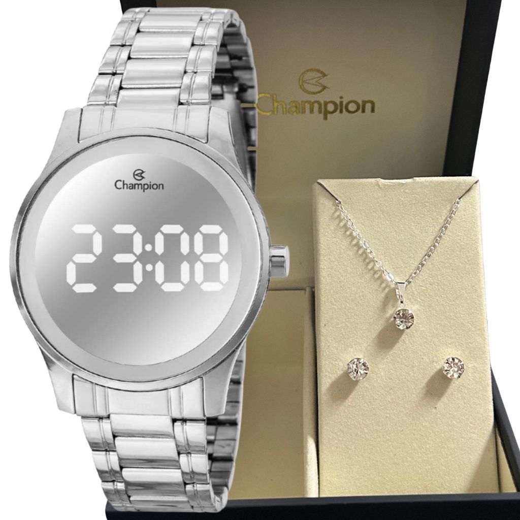 Kit Relógio Champion Feminino CH40115Q Original + Colar e Brinco Prateado Presente Digital