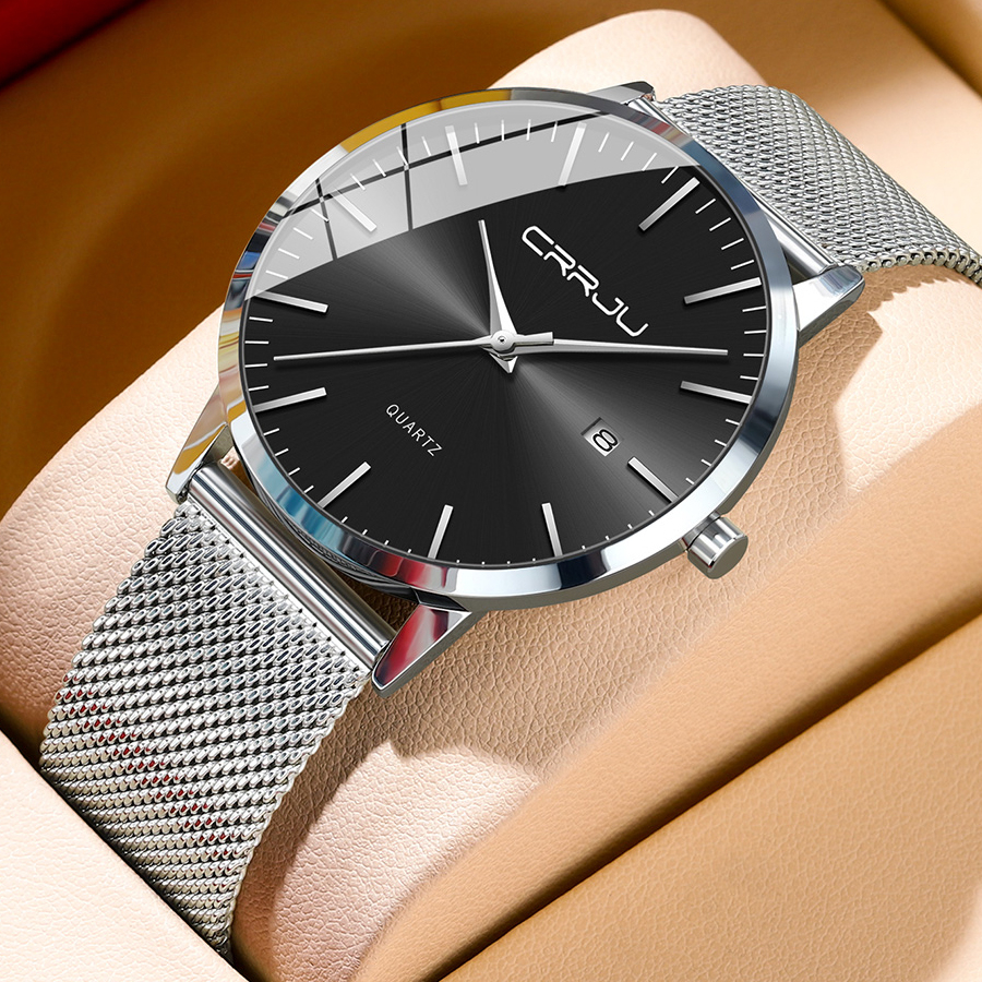 CRRJU Relógio Original Masculino De Aço Inoxidável De Discagem Ultra Fina Design Criativo Moda Casual Negócios Esportivos Quartzo Analógico 2172 X