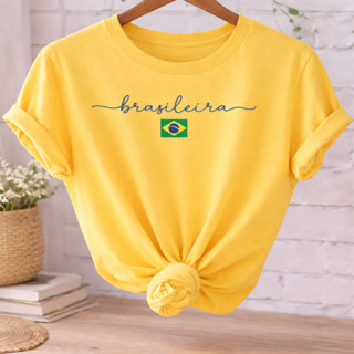 Blusa Feminina Brasil T-shirt Verão Algodão