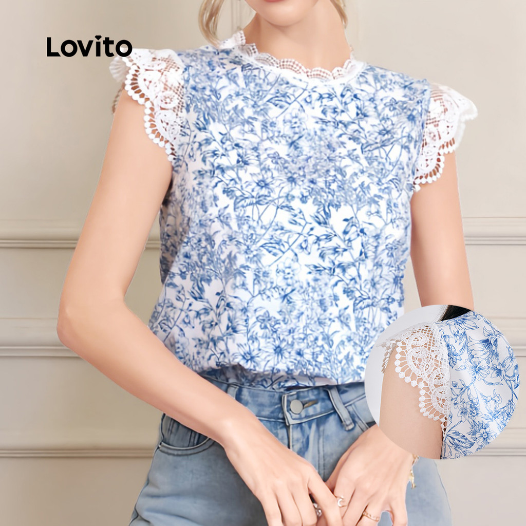 (New) Lovito Blusa Casual de Primavera/verão Azul para mulheres L243AD605