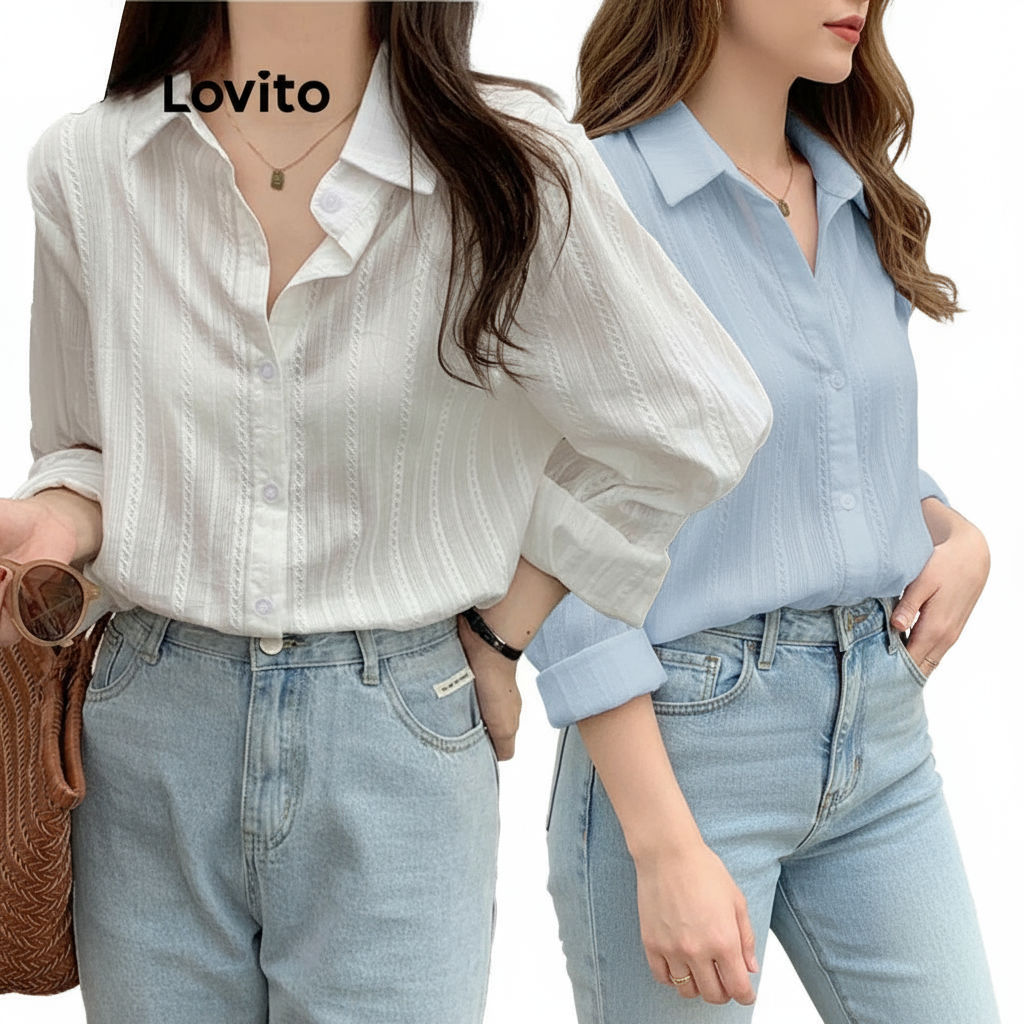 Lovito Blusa Casual Feminina Lisa Botão Frontal LNL298