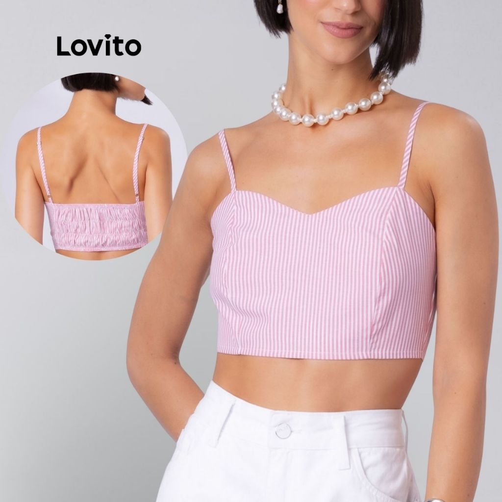 Lovito Top Regata Feminina Alça Fina Listrada LB337BRL366