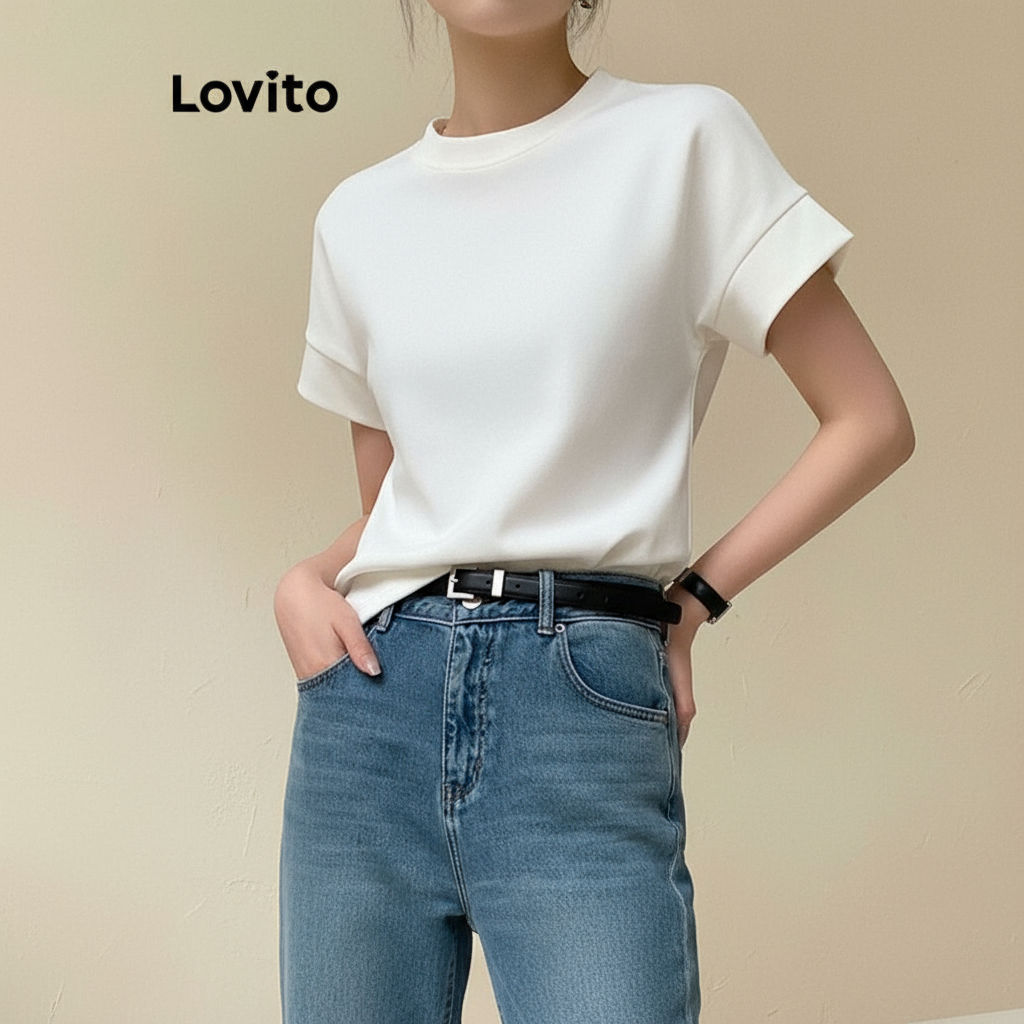 Lovito Camiseta Casual Botão Amor Primavera/verão Azul-marinho para Mulheres L165ED364
