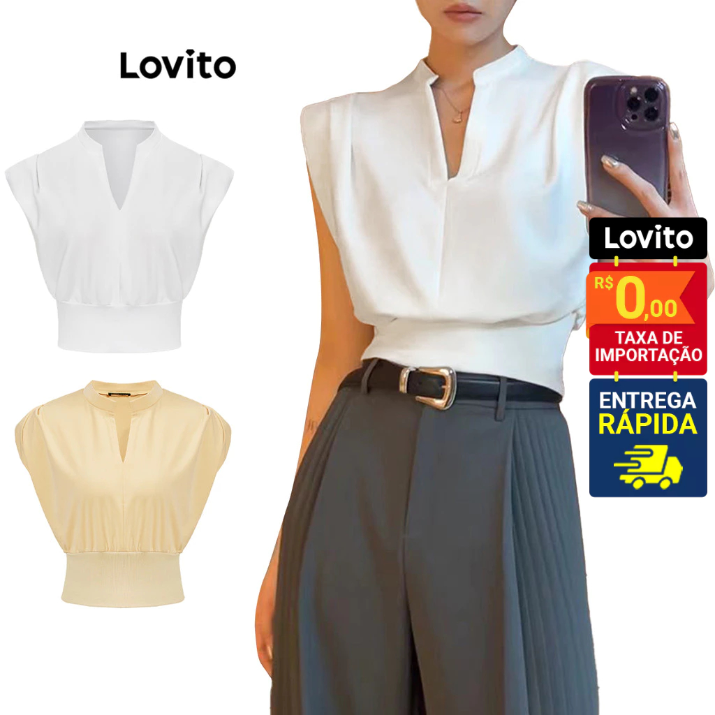 Lovito Blusa Boho Lisa para Mulheres LB1442BRL1472