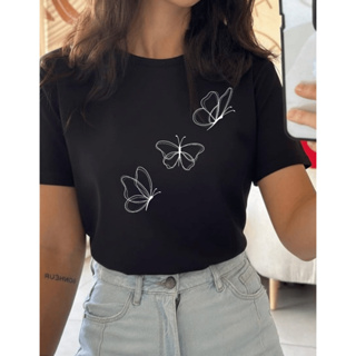 Camiseta Feminina Estampada Borboletas Algodão Confortável – Nova Coleção Ótimo Custo Benefício