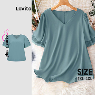 Lovito Blusa Curva Plus Size Casual Lisa Camada Dupla Blusa Verão/Primavera Para Mulheres LBL20323